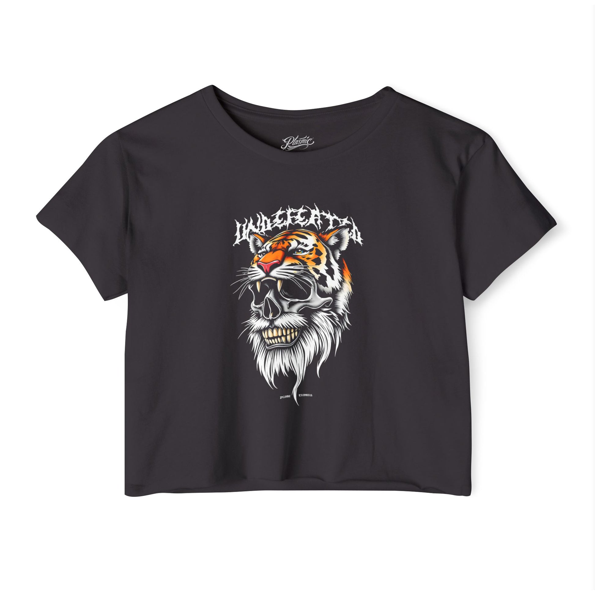 A bold tattoo and metal inspired crop top t-shirt designed for statement streetwear and everyday wear.